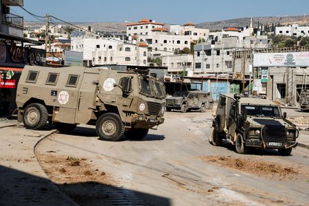 JERUSALEM (Reuters) -Israeli forces killed at least three Palestinian militants in stepped-up operations across the occupied West Bank on Tuesday following the killing of three Israelis near a Jewish settlement a day earlier, the Israeli military said.