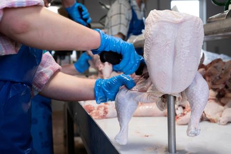 “Poultry workers toil in cramped, cold conditions, slicing up birds thousands of times per hour as chickens rush down the line,” he said.
