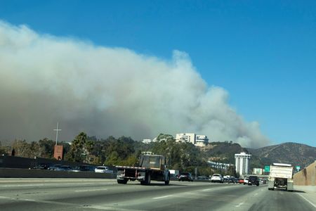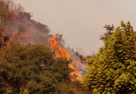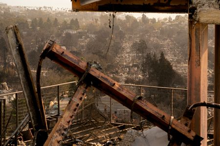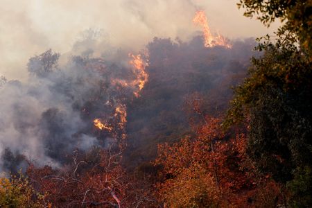 LOS ANGELES (Reuters) -Aircraft dropped water and fire retardant on steep hills to stem the eastward spread of the Palisades wildfire in Los Angeles on Saturday as on-the-ground firefighting intensified amid warnings of wind gusts of up to 70 mph (110 kph) that could make matters worse.