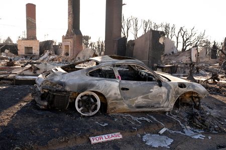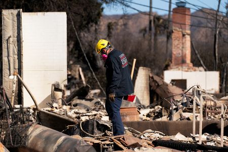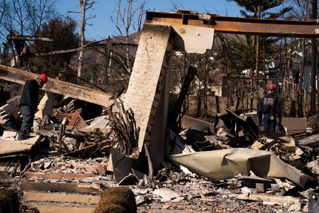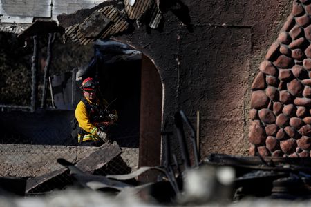 LOS ANGELES (Reuters) -Firefighters on Tuesday held the line against two massive wildfires that have ravaged parts of Los Angeles for the past week, even as desert winds and a parched landscape presented extremely hazardous conditions.