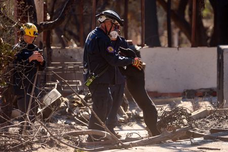 LOS ANGELES (Reuters) -Los Angeles officials told most evacuees from the wildfires on Thursday to stay away from their homes at least another week as emergency responders remove toxic waste from incinerated neighborhoods and cut off electricity and gas lines posing a hazard amid the ruins.
