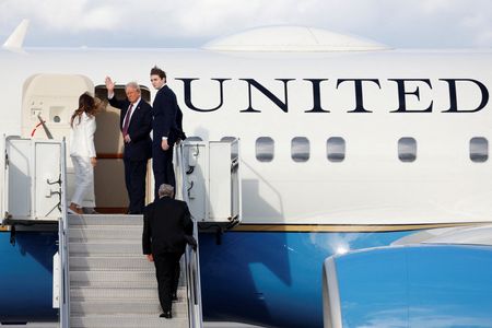 WEST PALM BEACH, Florida (Reuters) – President-elect Donald Trump headed to Washington on Saturday ahead of his inauguration on a U.S. military airplane supplied by U.S. President Joe Biden, as the outgoing president emphasized sticking with traditional transition norms.