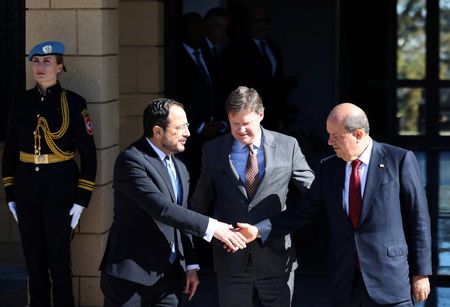 NICOSIA (Reuters) -Leaders of war-divided Cyprus said on Monday they supported opening further crossing points along the 1974 ceasefire line splitting the island to meet popular demand, and would work with the United Nations towards that objective.