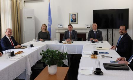 President Nikos Christodoulides, the Greek Cypriot leader, and Turkish Cypriot leader Ersin Tatar discussed the modalities of new checkpoints at a rare meeting hosted by the United Nations in the divided capital Nicosia.