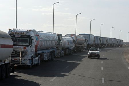 Long lines of trucks carrying fuel and aid supplies queued up at border crossings in the hours before the ceasefire was due to take effect.