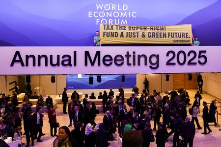 DAVOS, Switzerland (Reuters) -Greenpeace activists staged a brief climate change protest just outside the main hall of the World Economic Forum’s annual meeting on Thursday, as business and political leaders gathered for this week’s event in Davos.