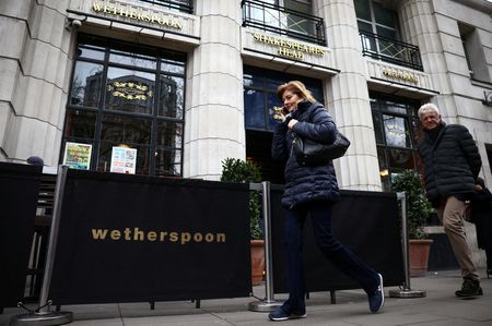 (Reuters) – British pub group J D Wetherspoon said on Wednesday its like-for-like sales rose 5% in the 25 weeks to Jan. 19, helped by strong demand for its food and drinks during the holiday season.