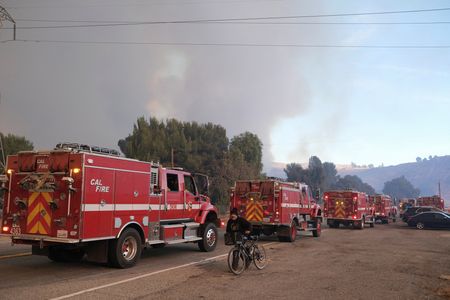 CASTAIC, California (Reuters) -A new wildfire that broke out north of Los Angeles on Wednesday rapidly spread to more than 9,400 acres (38 square km), fueled by strong winds and dry brush, forcing mandatory evacuation orders for more than 31,000 people.