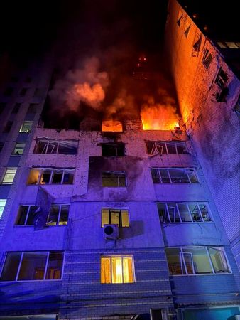 KYIV (Reuters) -Russia launched a barrage of drones in an overnight attack on Ukraine on Friday, killing three civilians and damaging residential and commercial buildings, officials said.
