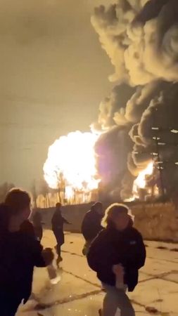Video footage posted on social media showed smoke and flames engulfing an oil refinery in Ryazan, and people apparently running for safety in panic. Reuters was able to verify the location of the video footage but not when it was shot.