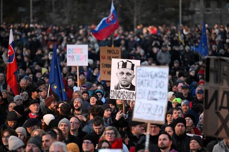 BRATISLAVA (Reuters) -Tens of thousands of protesters thronged a central square in the Slovak capital on Friday, waving banners opposing Prime Minister Robert Fico’s policy shift closer to Russia, after tensions between the government and the opposition rose.