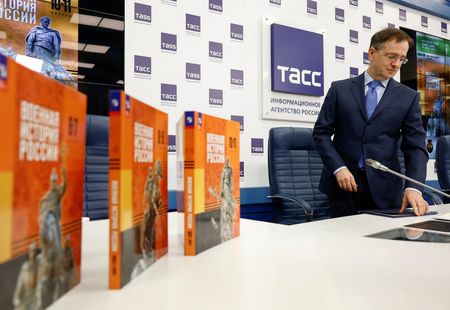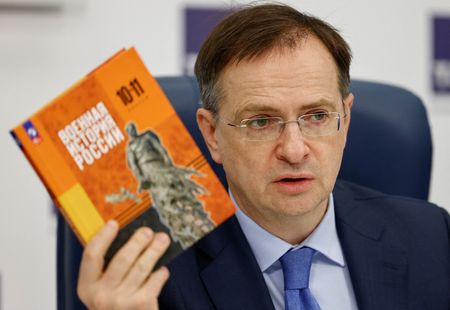 The three-volume “Military History of Russia” was edited by Vladimir Medinsky, an aide to Putin who headed a delegation that held unsuccessful peace talks with Ukraine in 2022, in the early months of the war, and has already co-authored Russia’s main history textbook.