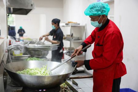His usual job is aircraft maintenance, but since November, he has been busy ordering stoves, refrigerators and frying pans to cook meals for thousands of children at a time at a base in Indonesia’s capital, Jakarta.