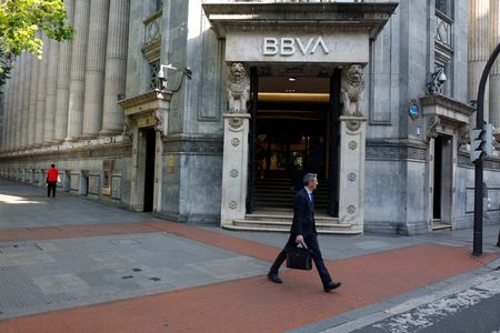 MADRID (Reuters) -BBVA plans to pay over 5 billion euros ($5.2 billion) to shareholders, it said on Thursday after its fourth-quarter net profit beat forecasts, while its chairman said he expected its takeover of smaller rival Sabadell to go ahead.