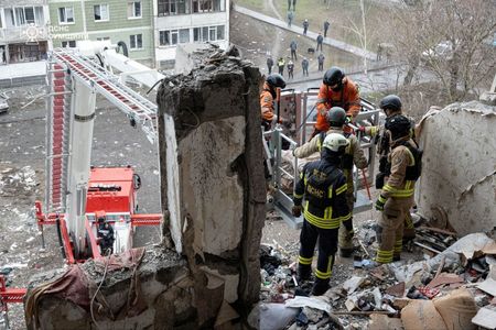 (Reuters) -A Russian drone struck a multi-storey apartment building in the northeastern Ukrainian city of Sumy early on Thursday, killing nine people and injuring 13, including a child, President Volodymyr Zelenskiy said.