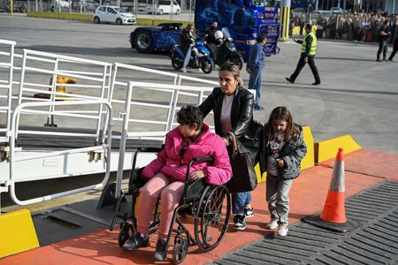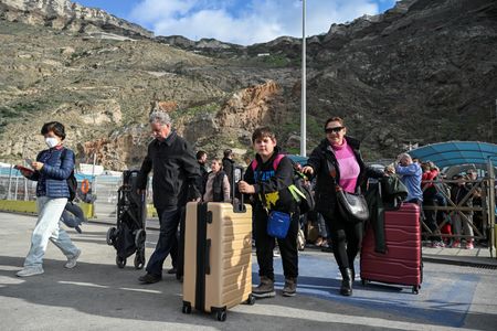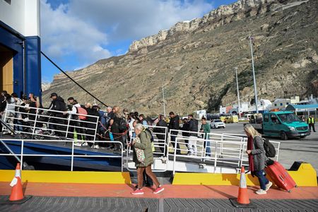 ATHENS (Reuters) -Families boarded ferries and extra flights were laid on to help people leave Santorini on Monday as dozens of tremors shook the Greek island for a fourth day.