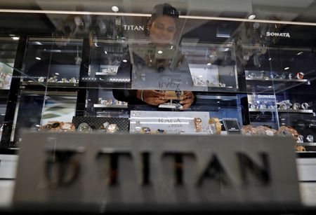 (Reuters) -Indian jeweller and watchmaker Titan reported a largely flat third-quarter profit on Tuesday, but still topped estimates as customers looked past high gold prices to splurge on ornaments during the festive season.
