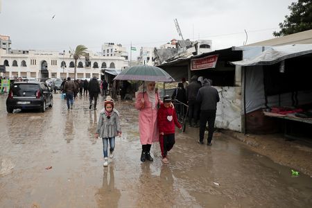 “Despite the tragedy we are living, despite the rain and the very bad weather, people are staying under no roof,” said Qassem Abu Hassoun, standing in the rain surrounded by wrecked homes and broken roads in Rafah in the southern Gaza Strip.