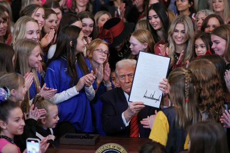 NEW YORK (Reuters) – President Donald Trump’s executive order restricting transgender women and girls from playing in female sports offers little guidance on enforcing the ban beyond looking into the “best practices” of those states with similar laws, which have mostly proven limited or impractical.
