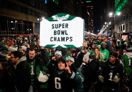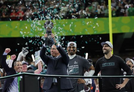 NEW ORLEANS (Reuters) -The Philadelphia Eagles dominated the Chiefs 40-22 in Sunday’s Super Bowl in New Orleans to deny Kansas City in their bid for a third consecutive title and exact brutal revenge for their loss to the team in the NFL title game two years ago.