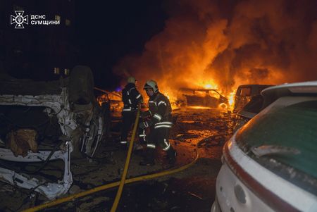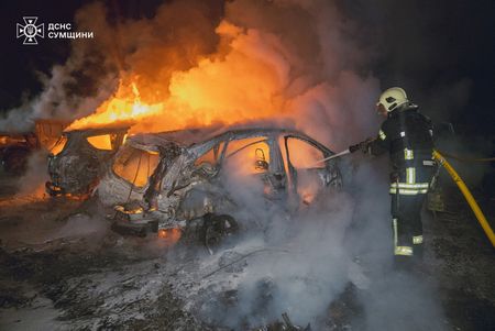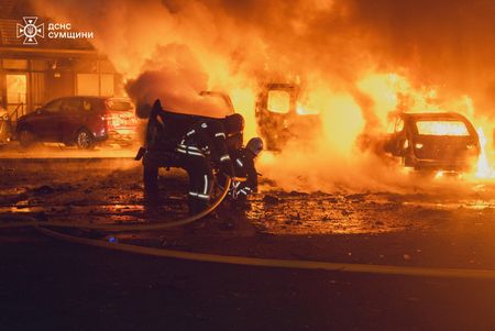 KYIV (Reuters) -Overnight Russian drone attacks sparked a fire in Kyiv and injured a woman and damaged several houses in the northeastern city of Sumy, Ukrainian officials said on Monday.