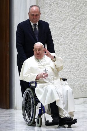 VATICAN CITY (Reuters) – Pope Francis said on Wednesday he was still suffering from a bout of bronchitis and asked an aide to read prepared remarks for a weekly general audience at the Vatican for the second time in two weeks.