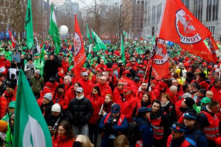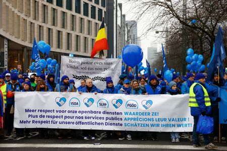 BRUSSELS (Reuters) -Tens of thousands of Belgians took to the streets on Thursday in protest over the new government’s planned pension reforms, during the first day of a multi-day strike that halted all air traffic in the country.