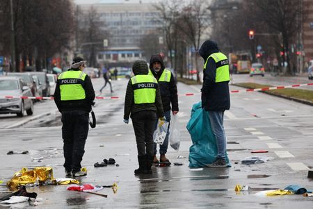 MUNICH, Germany (Reuters) -At least 30 people were hurt when a car driven by an Afghan national ploughed into a crowd in Munich on Thursday in what the state premier said was probably an attack, putting security back in focus before next week’s federal election.