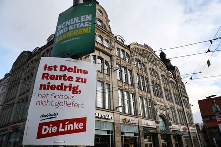 BERLIN (Reuters) – The successor to East Germany’s Communist Party has made a late surge two weeks before a national election after its leader stood up in parliament to lash the front-running conservatives for breaking a historic taboo on cooperating with the far right.