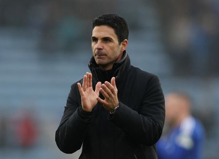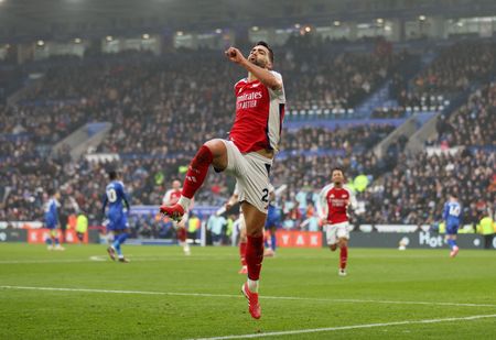 LEICESTER, England (Reuters) -Arsenal made light of the absence of any specialist strikers as midfielder Mikel Merino scored both goals in a 2-0 win at Leicester City that kept the north London club’s Premier League title challenge very much on track on Saturday.