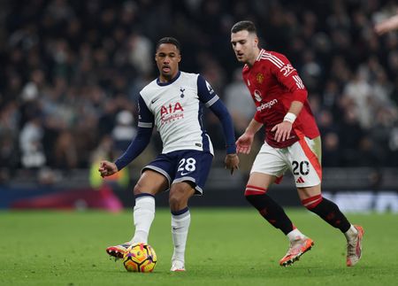 LONDON (Reuters) – Tottenham Hotspur midfielder James Maddison’s early goal was enough for his side to end a barren home run in the Premier League by beating fellow strugglers Manchester United 1-0 in an entertaining clash on Sunday.