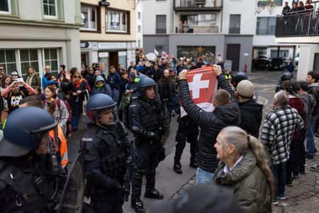 EINSIEDELN, Switzerland (Reuters) – Around 250 people protested on Saturday against the leader of the far-right Alternative for Germany (AfD) party in the Swiss town where she has a home, sparking counter-demonstrations in a charged atmosphere that led to five arrests, authorities said.