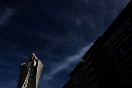 VATICAN CITY (Reuters) -Pope Francis has shown a “further, slight improvement” in his medical condition, the Vatican said on Wednesday, in a sign of progress as the 88-year-old pontiff battles double pneumonia.
