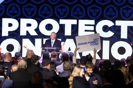 TORONTO (Reuters) -Ontario’s Progressive Conservative Party swept to victory and clinched a rare third consecutive majority, according to a Canadian Broadcasting Corporation projection, following a campaign dominated by U.S.