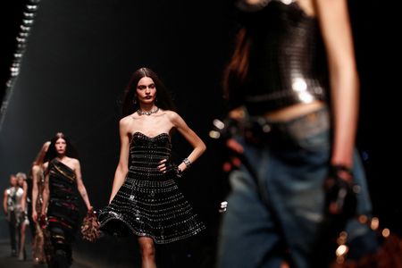 MILAN (Reuters) – Versace mixed prints, sharp tailoring and punk in its latest collection on the catwalk at Milan Fashion Week, as speculation mounted over a possible sale of the Italian luxury label.