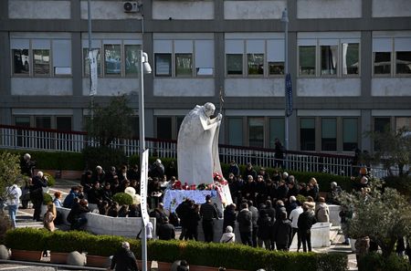 VATICAN CITY (Reuters) -Pope Francis remained stable through the day on Sunday and no longer required the use of mechanical ventilation to breathe, the Vatican said, in a sign of progress as the 88-year-old pontiff battles double pneumonia.