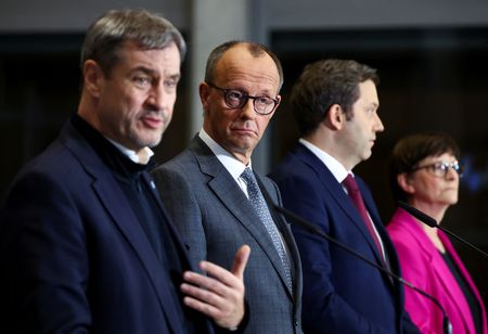 BERLIN (Reuters) -The parties hoping to form Germany’s next government have agreed to create a 500 billion euro infrastructure fund and overhaul borrowing rules, a tectonic spending shift that jolted markets on Wednesday on hopes of reviving Europe’s largest economy.