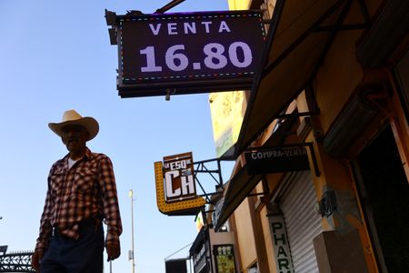 NEW YORK/LONDON (Reuters) -Mexico’s peso rose against the dollar in a volatile session on Tuesday, as traders priced the effect of newly imposed U.S. tariffs of 25% on imports from Mexico.