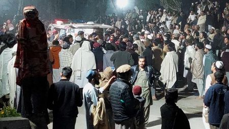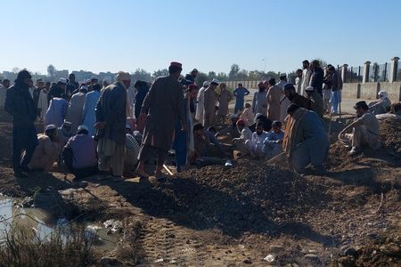 DERA ISMAIL KHAN, Pakistan (Reuters) -Thousands of people poured on to the streets of Bannu in northwestern Pakistan for the funerals on Wednesday of 18 people, including six children, killed in a suicide attack on a security installation.