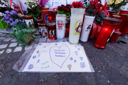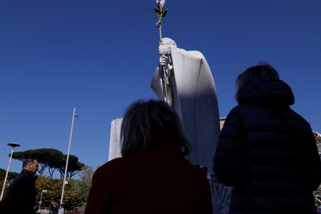 VATICAN CITY (Reuters) – Pope Francis, who has been struggling to overcome double pneumonia for almost three weeks, remained in stable condition throughout the day on Wednesday and has not had any new breathing crises, the Vatican said.