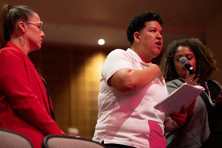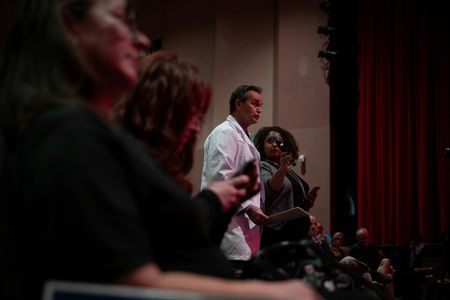 To boos and jeers from an audience of around 400 people at the Phoenix meeting, U.S. Air Force veteran and federal worker Tim Cox held up a section of the Project 2025 plan he said Trump and billionaire Elon Musk were using to slash the federal bureaucracy.