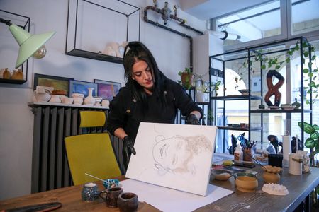 In the small studio where she works in Urgup, a town in central Turkey’s Nevsehir province, paintings and pottery line the walls.