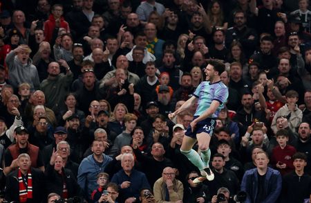 MANCHESTER, England (Reuters) -Arsenal midfielder Declan Rice struck in the second half to cancel out Bruno Fernandes’s free kick but Mikel Arteta’s men could only muster a 1-1 draw with Manchester United on Sunday in a big blow to their Premier League title chances.
