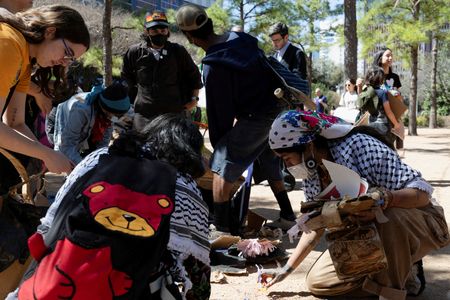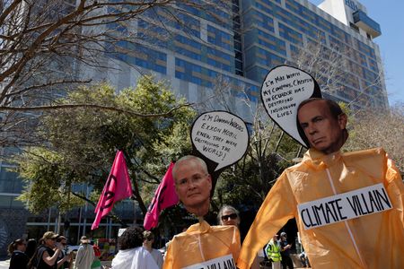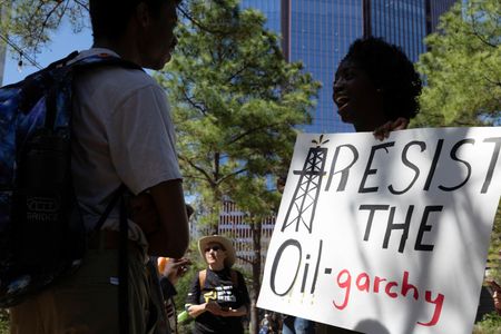 HOUSTON (Reuters) – Protesters gathered on Monday outside the world’s largest annual meeting of energy executives, where the U.S. Energy Secretary Chris Wright said that climate change was a side effect of building the modern world.