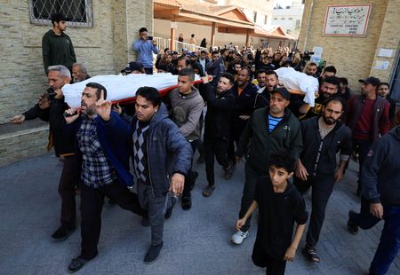 CAIRO (Reuters) – An Israeli air strike killed four Palestinians in Gaza on Tuesday, the territory’s civil emergency service said, as Arab mediators and the United States tried to hammer out differences between Hamas and Israel over a January 19 ceasefire agreement.