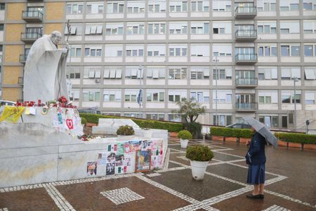 VATICAN CITY (Reuters) – Pope Francis will on Thursday mark the 12th anniversary of his election as leader of the world’s 1.4 billion Catholics, but he will do so from Rome’s Gemelli hospital where he has been treated for double pneumonia for almost a month.