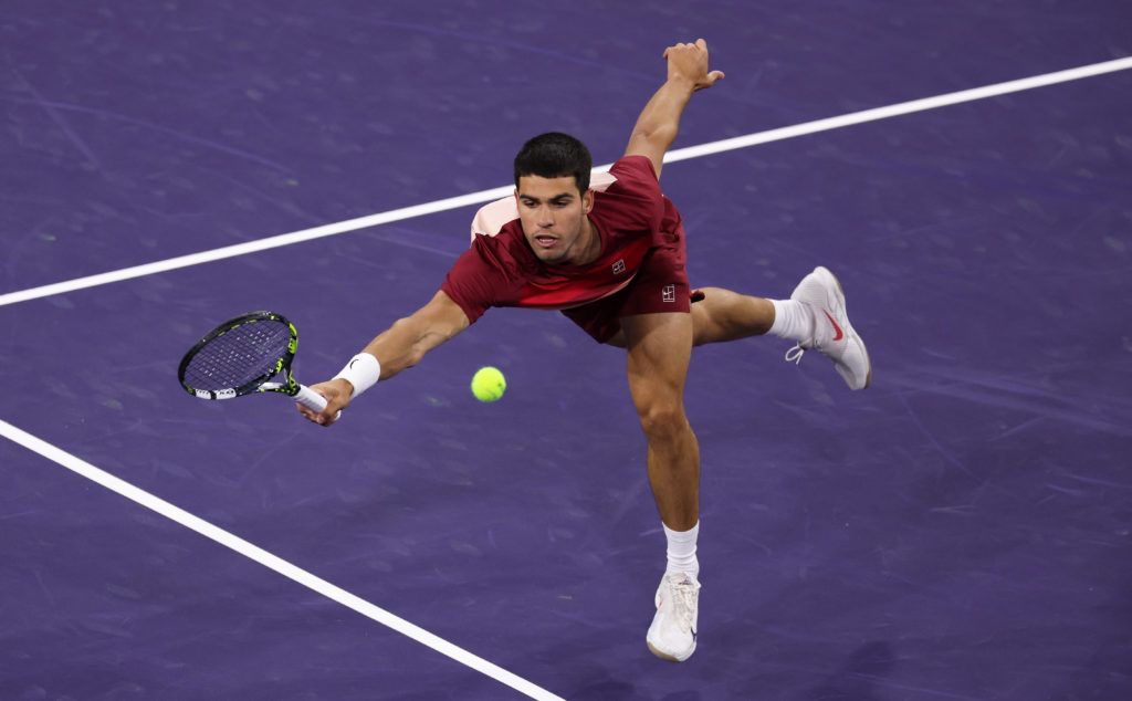 Two-time defending champion Carlos Alcaraz fought off determined challenger Francisco Cerundolo 6-3, 7-6 (7/4) on Thursday to reach the semi-finals of the Indian Wells ATP Masters.On another cold, blustery night in the California desert, Alcaraz battled back from 1-4 down in the second set, coming up with a break and two love service holds to force the tiebreaker as he kept his bid to join Roger Federer and Novak Djokovic as the only men to win three straight Indian Wells titles on track.Alcaraz had to save break points in each of his first three service games.