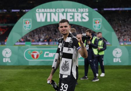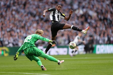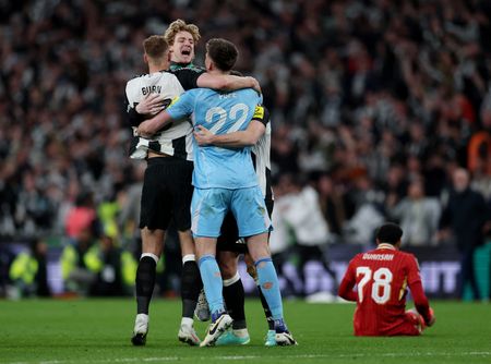 LONDON (Reuters) – Newcastle United ended a 70-year domestic trophy drought as they beat holders Liverpool 2-1 to win the League Cup with goals in each half by Dan Burn and Alexander Isak sparking a Geordie party at Wembley Stadium on Sunday.