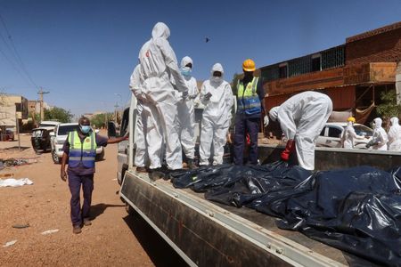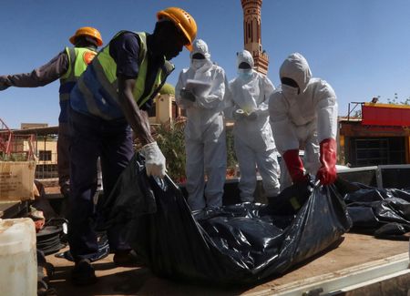 SHARG ELNIL, Sudan (Reuters) – In a part of Sudan recaptured by the army just weeks ago after nearly two years under the control of paramilitary fighters, Red Crescent volunteers in hazmat suits and masks pulled bodies out of a well and put them in black bags as residents looked on.