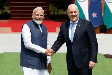 MUMBAI/NEW DELHI (Reuters) – India and New Zealand have decided to start detailed negotiations on a mutually beneficial free trade agreement, Indian Prime Minister Narendra Modi said on Monday after talks with his New Zealand counterpart Christopher Luxon.